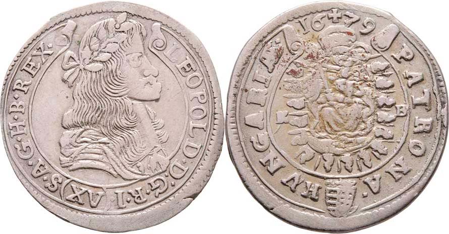 XV Krejcar 1679 KB, Nech.1162, Husz.1425, 6.115g, nep.vada mater. na hraně, nep.nedor., pěkná patina