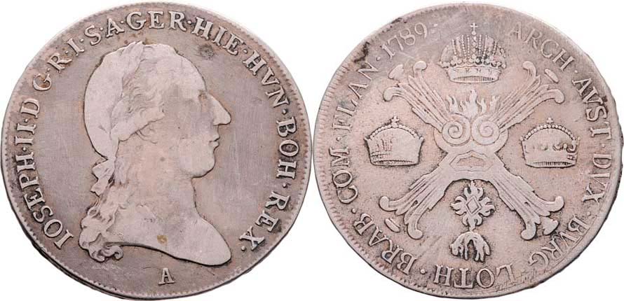 1/2 Tolar křížový 1789 A, Vídeň, P.28, 14.384g, just., hr., rysky, patina