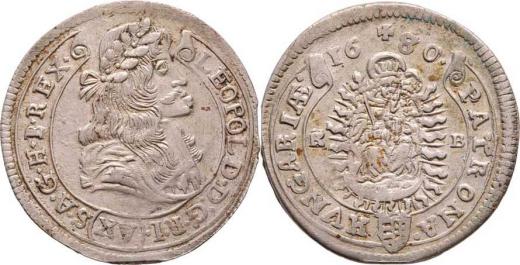 XV Krejcar 1680 KB, Nech.1163, Husz.1425, 6.466g, krajový střížek, nep.nedor., pěkná patina, téměř