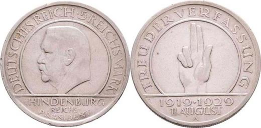 5 Marka 1929 A - Přísaha, KM.64 (Ag500), 25.050g, hr., dr.rysky, pěkná patina