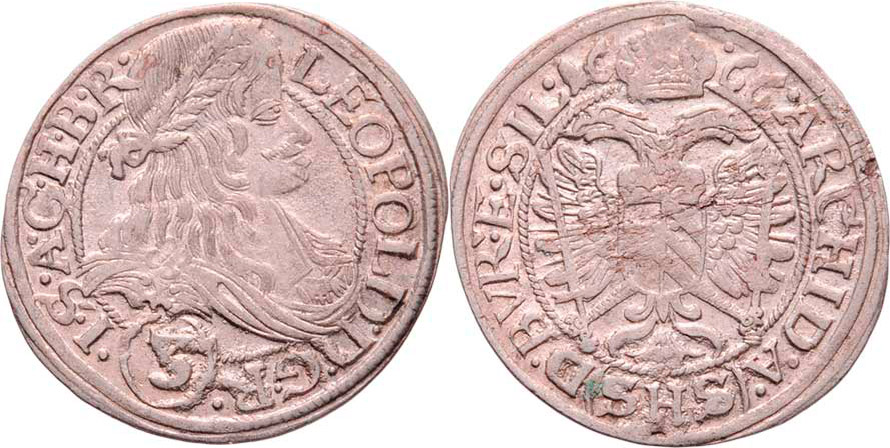 3 Krejcar 1666 SHS, Vratislav-Hammerschmidt, dělení opisů: "...G.R.(3).I.S.../...V.(SHS).D.BVR:ET.SIL.", MKČ.1619, Nech.736, 1.573g, nep.vada materiálu