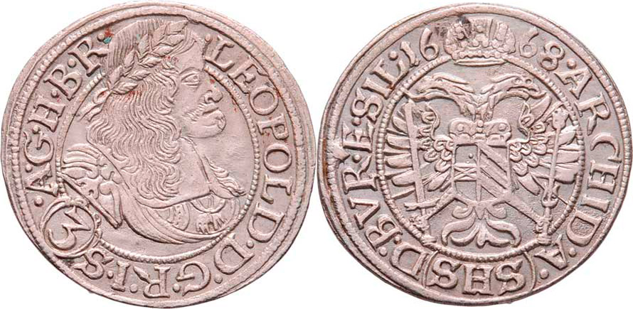3 Krejcar 1668 SHS, Vratislav-Hammerschmidt, dělení opisů: "...I.S.(3).A.G.../...A.(SHS).D.BVR.ET.SIL.", MKČ.1619, Nech.738, 1.846g, dr.vada razidla R!