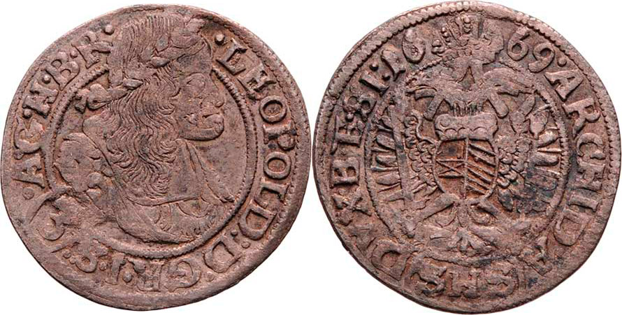 3 Krejcar 1669 SHS, Vratislav-Hammerschmidt, dělení opisů: "...I.S.(3).A.G.../...A.(SHS).DVX.B.ET.SI:", MKČ.1623, Ne.740, 1.549g, nedor., patina RR!
