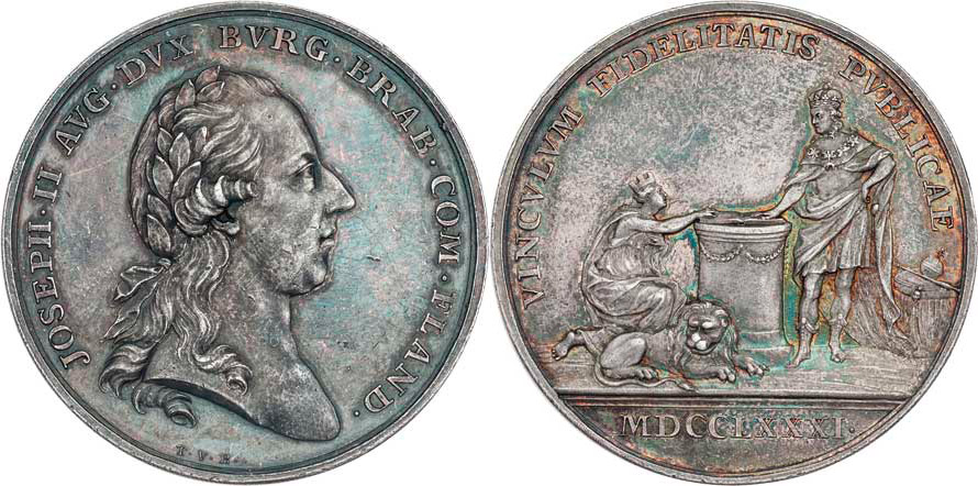 Berckel - AR 40mm na holdování ve Flandrech 1781 - poprsí zprava, opis / holdovací scéna, písmo, Sign., 26.448g, M.2139, H.3155, Nov.H.3b, nep.hr., nep.rysky