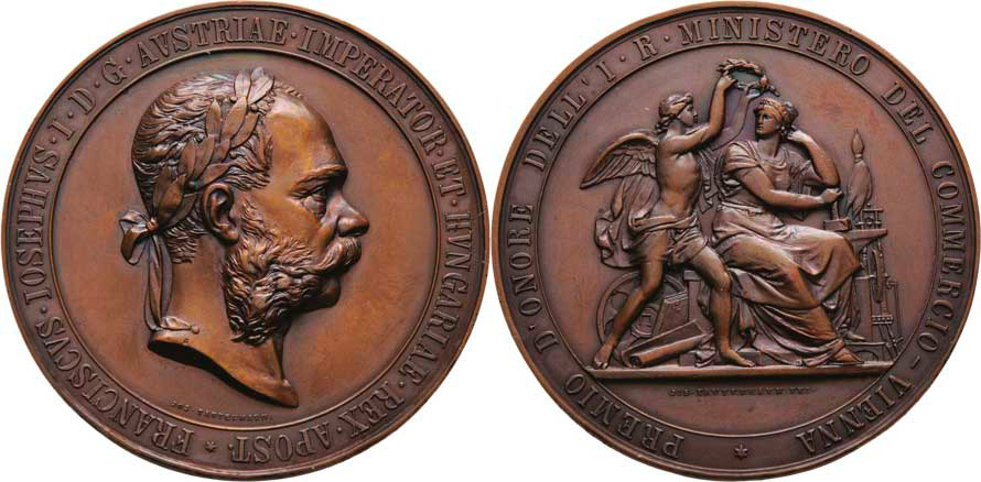Tautenhayn - cena ministerstva obchodu 1908 - poprsí zprava, opis / alegorie, opis, bronz 57mm, 66.321g, hr."ISTITUTO PER LE PICCOLE INDUSTRIE TRIESTE", rys.
