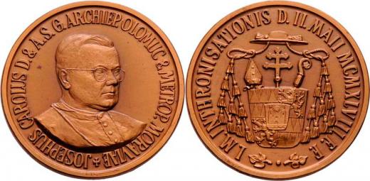 Doležal - AE intronizační medaile 2.V.1848 - poprsí zprava, latinský opis / osobní znak, latinský opis, Sign., patinovaný bronz 50 mm, Taul.406, nep.skvrnka