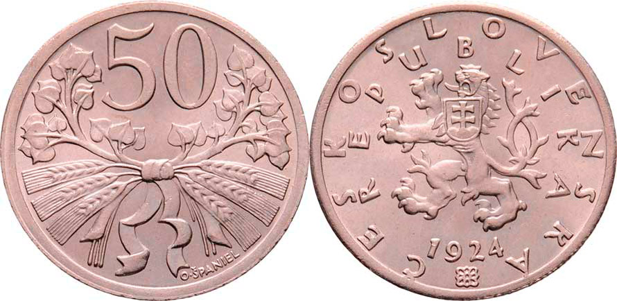 50 Haléř 1924 (CuNi), 4.943g