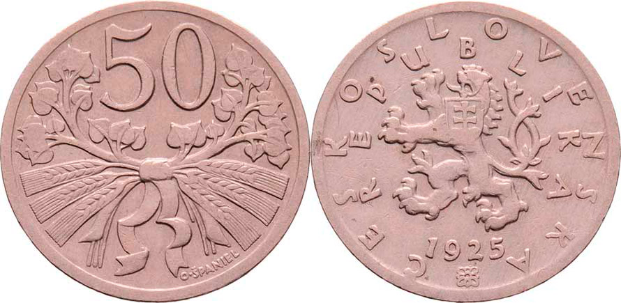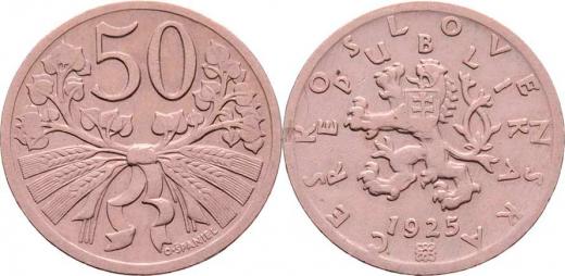 50 Haléř 1925 (CuNi), 4.916g, dr.hr., dr.rysky, patina R!