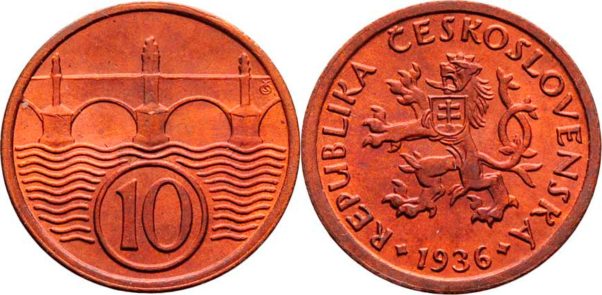 10 Haléř 1936, 1938 (CuZn), 1.987g, 2.063g 2ks