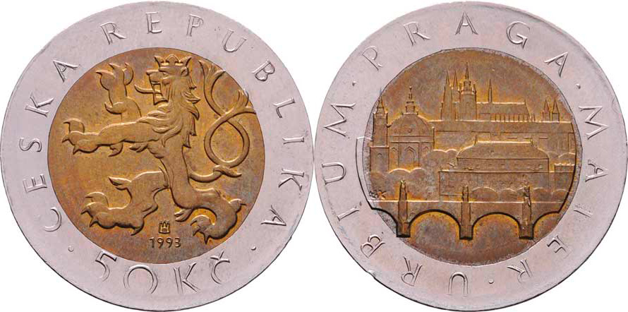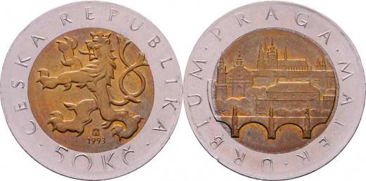 50 Koruna 1993 - minc.Hamburk - zmetek - bez měděného pokovení, nep.rysky