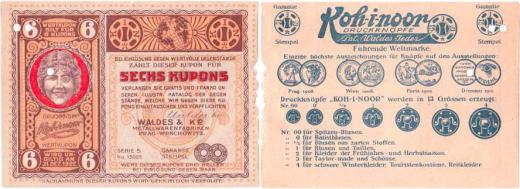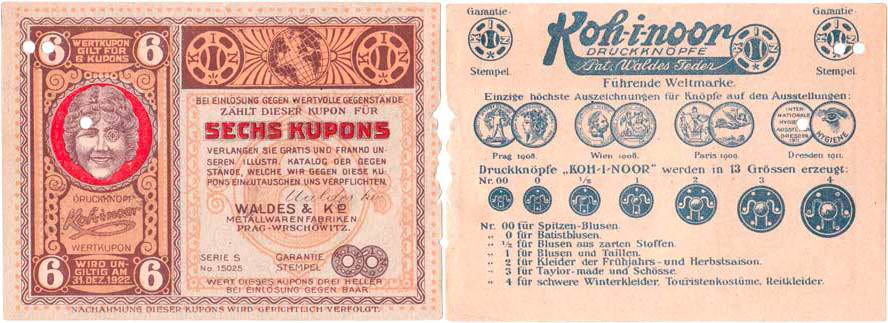Praha - firma Waldes, 6 Kuponů (3 Haléře) 1920, D-H.neuvádí, H-H.180.18.7a, perforace 3 dírky 2.5 mm, otřepený okraj
