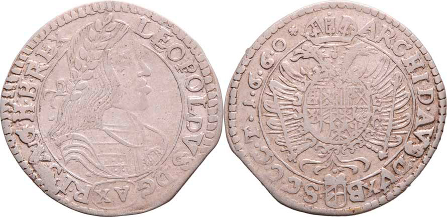 XV Krejcar 1660, Vídeň-bez zn., Höll.Wie.60.1.1, Nech.1895, M-A.159, 5.969g, krajový střížek, nedor., nep.vady razidla, patina R!