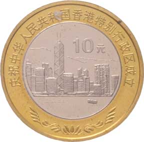 Sada pamětních mincí 1997 - připojení Hong-Kongu k Číně - 3x 10 Yuan, Y.902 (Ag999, pouze 88.000 ks), Y.722 (bimetal), Y.723 (bimetal), společná etue R!