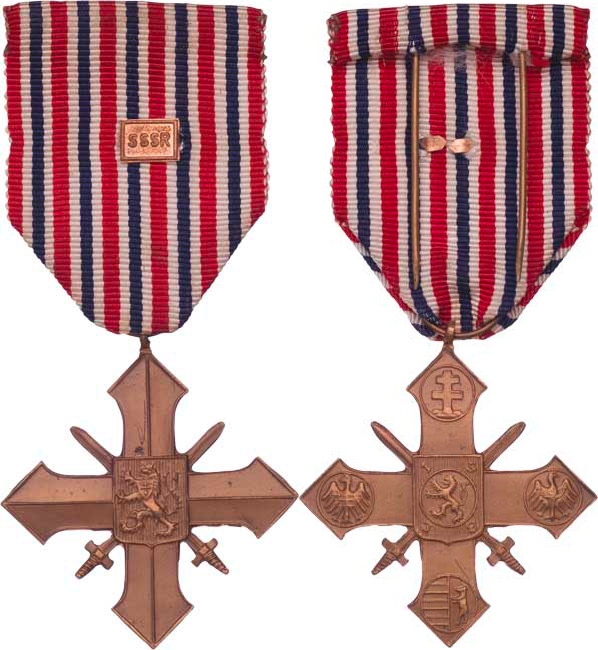 Československý válečný kříž 1939, VM.11-B, 1.pražské vydání z roku 1945, na stuze štítek "SSSR"