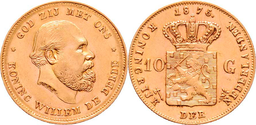 10 Gulden 1875, KM.105 (Au900), 6.711g, nep.hr., nep.rysky, pěkná patina, téměř