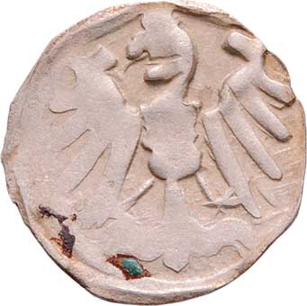 Městský peníz bez čtyřrázu po roce 1452 - var. "malý zobák", Rad.20, SNS1.tab.XXII/459-461, 0.416g, nep.exc., nedor., pěkná patina