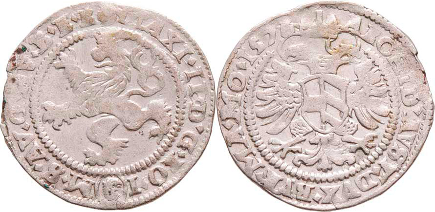Bílý groš 1576, Praha-Harder, J.13c, MKČ.186, 1.708g, krajový střížek, nep.nedor., patina