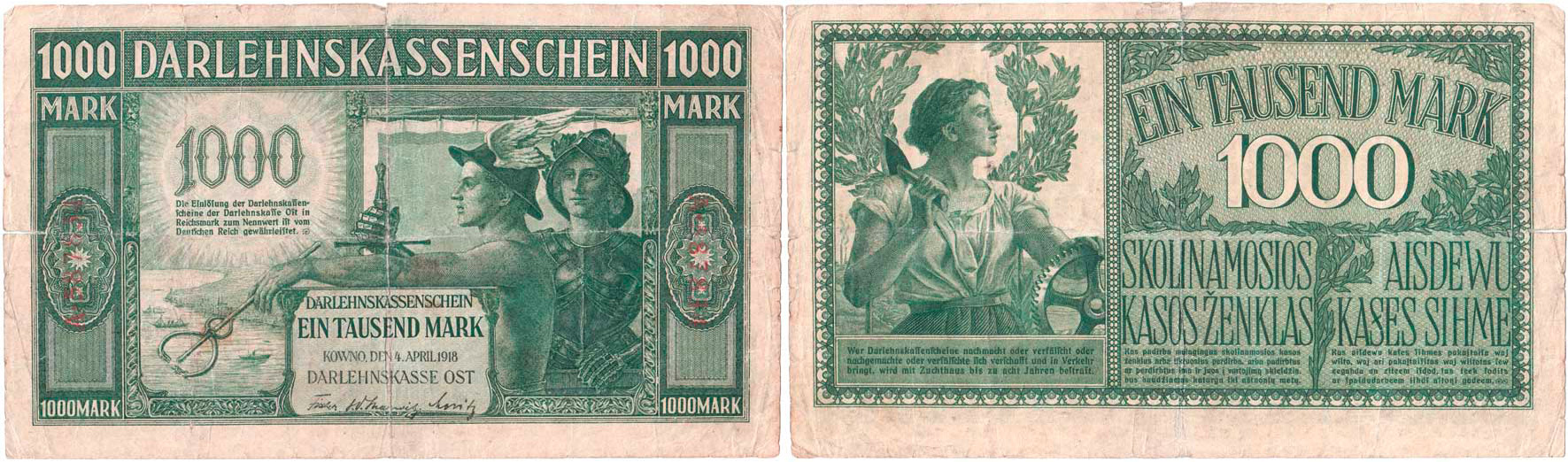 1000 Marka 1918, Kovno, Pick.R134, Ros.471a - série A, několikrát natržená R!