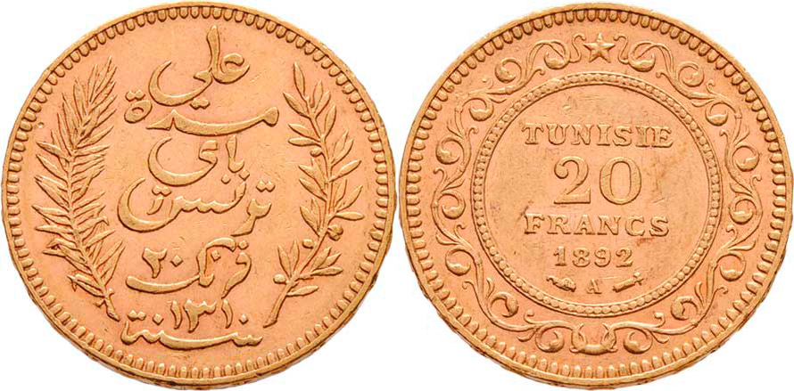 20 Frank, AH.1310 = 1892 A, KM.227 (Au900), 6.439g, nep.hr., nep.rysky, pěkná patina, téměř