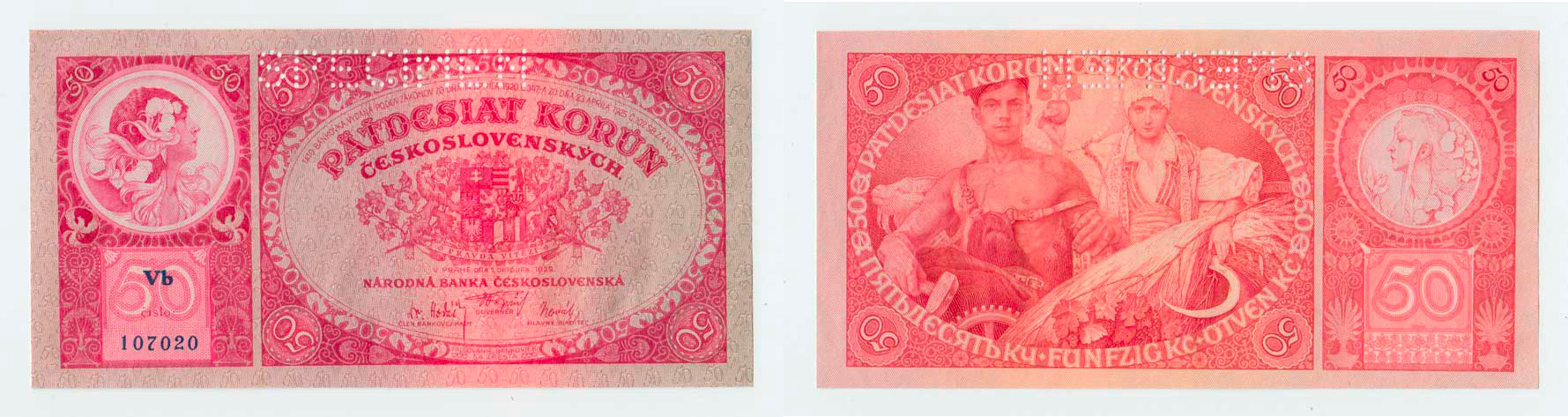 50 Koruna 1929, série Vb, BHK.24b "SPECIMEN"