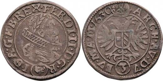 3 Krejcar 1630, Praha-du Bois, J.29a, MKČ.761, 1.610g, nedor., pěkná patina