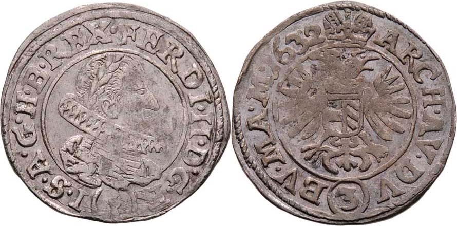 3 Krejcar 1632, Praha-Schuster, J.31a2, MKČ.761, 1.583g, nep.exc., nedor., pěkná patina