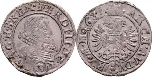 3 Krejcar 1637, Praha-Schusterová, J.31c, MKČ.763, 1.568g, nep.nedor., pěkná patina