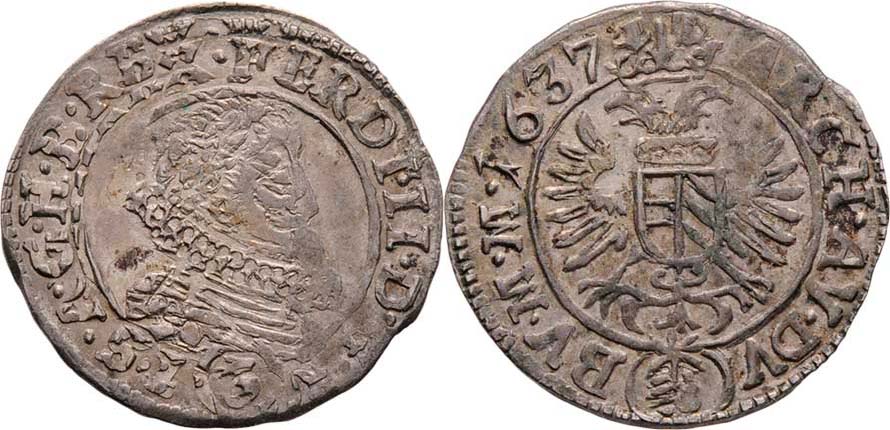 3 Krejcar 1637, Praha-Wolker, J.32, MKČ.763, 1.795g, nep.nedor., dvojráz, pěkná patina