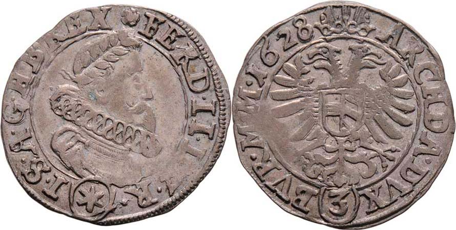 3 Krejcar 1628, K.Hora-Hölzl, J.31a, MKČ.811, 1.565g, nedor., pěkná patina, téměř