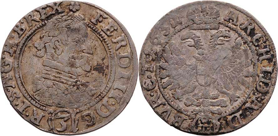 3 Krejcar 1631, Olomouc-Fritsch, MKČ.934, 1.444g, nep.nedor., patina R!