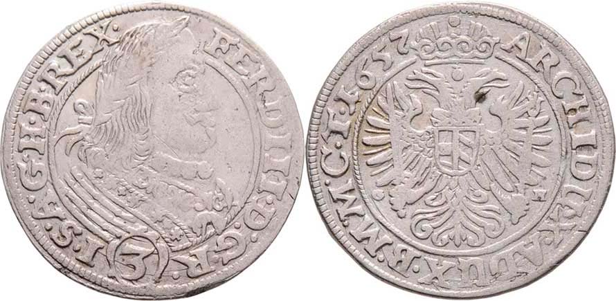 3 Krejcar 1657, Vratislav-Hübner, MKČ.1294, jako ČS.705, 1.639g, nep.skvrnka, patina