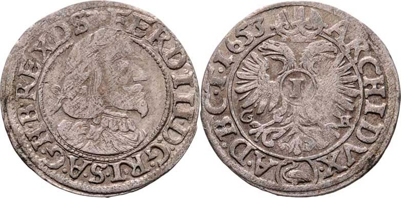 Krejcar 1653, Vratislav-Reichart a Hübner, MKČ.1297, 0.824g, nep.vada materiálu, nep.nedor., pěkná pat. R!