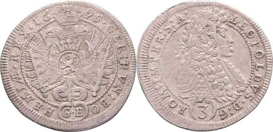 3 Krejcar 1695 GE, Praha-Egerer, MKČ.1426, Nech.203a, 1.181g, nep.exc., nep.nedor., pěkná patina, téměř