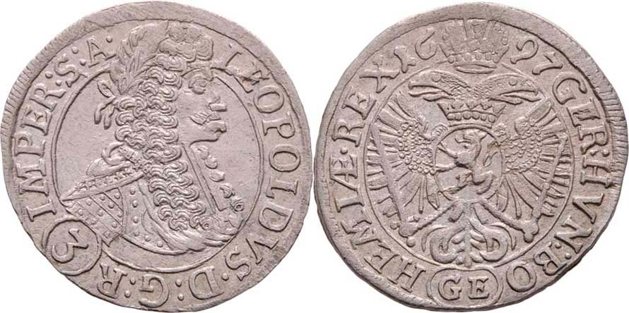 3 Krejcar 1697 GE, Praha-Egerer, MKČ.1425, Nech.208, 1.598g, nep.vada razidla, pěkná patina, téměř