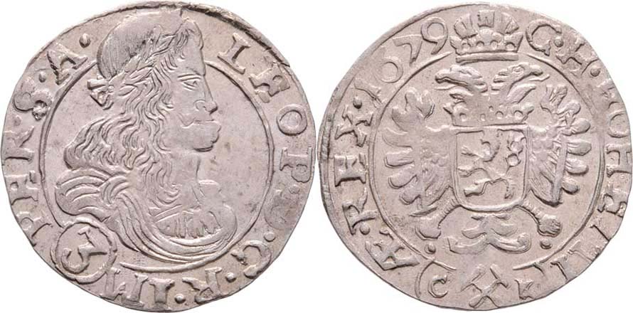 3 Krejcar 1679 CK, K.Hora-Krahe, Nech.295, MKČ.1454, 1.517g, nep.exc., nep.nedor., téměř