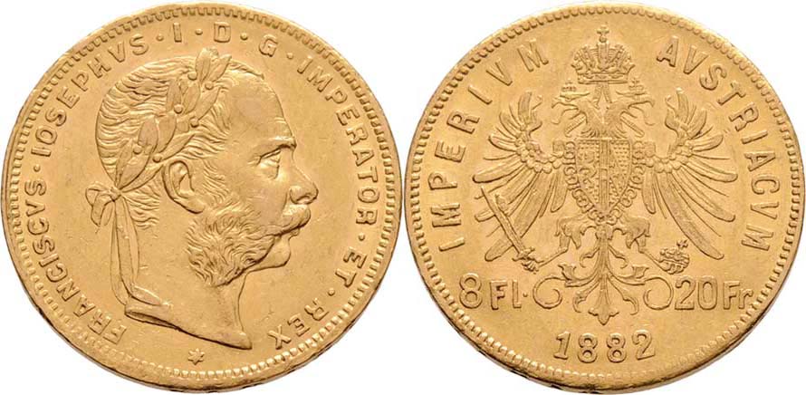 8 Zlatník 1882, 6.435g, nep.hr., nep.rysky, pěkná patina