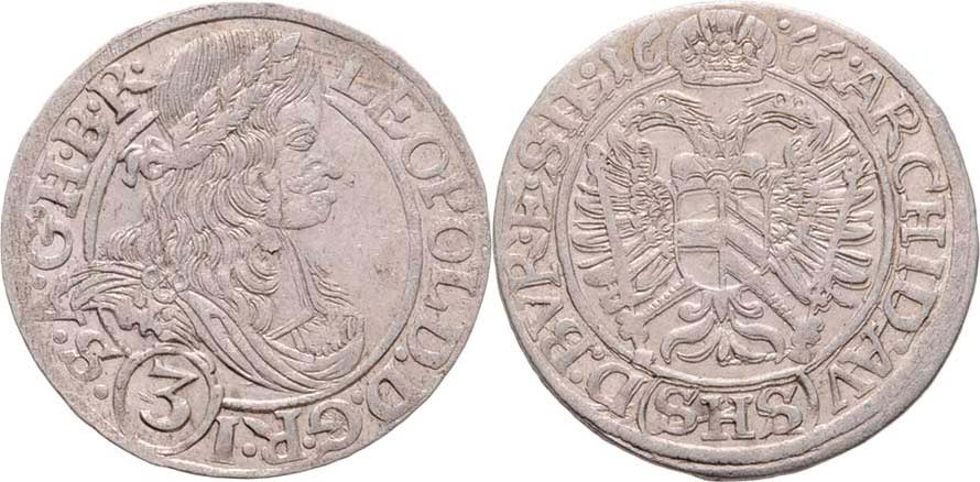 3 Krejcar 1666 SHS, Vratislav-Hammerschmidt, dělení opisů: "...R.I (3).S.A.../...AV.(SHS).D:BVR.ET.SIL.", MKČ.1619, Nech.736, 1.748g, nep.nedor., patina