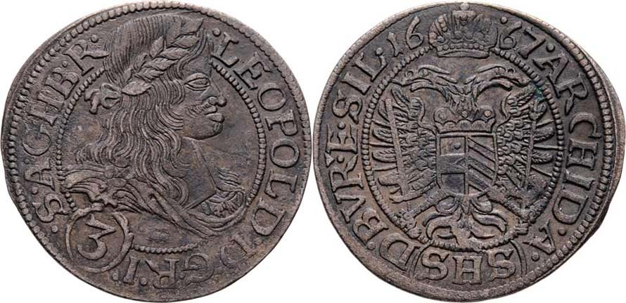 3 Krejcar 1667 SHS
