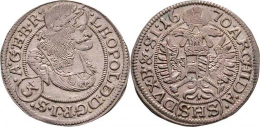 3 Krejcar 1670 SHS, Vratislav-Hammerschmidt, dělení opisů: "...I.S.(3).A.G.../...A.(SHS).DVX.B.&.SI:", MKČ.1622, Nech.743, 1.692g, vl.škr., pěkná patina