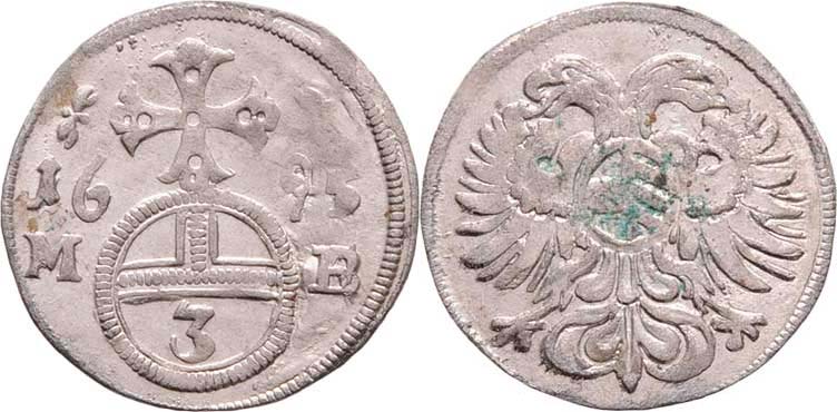 Grešle 1695 MB, Břeh-Brettschneider, T.158, MKČ.1709, Nech.966, 0.563g, nep.exc., nep.nedor., skvrnky