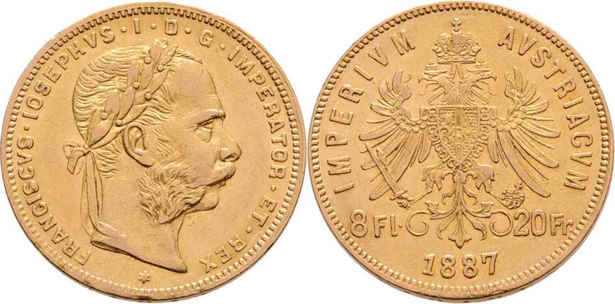 8 Zlatník 1887, 6.427g, nep.hr., nep.rysky, pěkná patina