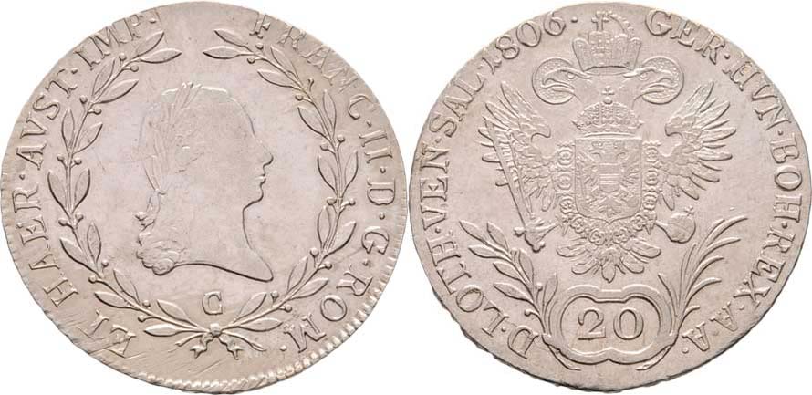 20 Krejcar 1806 C - s říšskou korunou a tituly císaře římského a rakouského, Praha, 6.680g, mírně just., nep.hr., nep.rysky R!