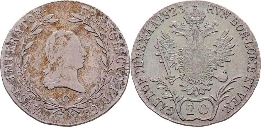 20 Krejcar 1823 C, Praha, 6.658g, nep.just., patina RR!