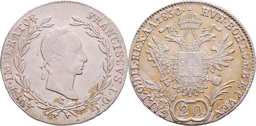 20 Krejcar 1830 C, Praha, 6.699g, nep.just., nep.hr., nep.rysky, pěkná patina