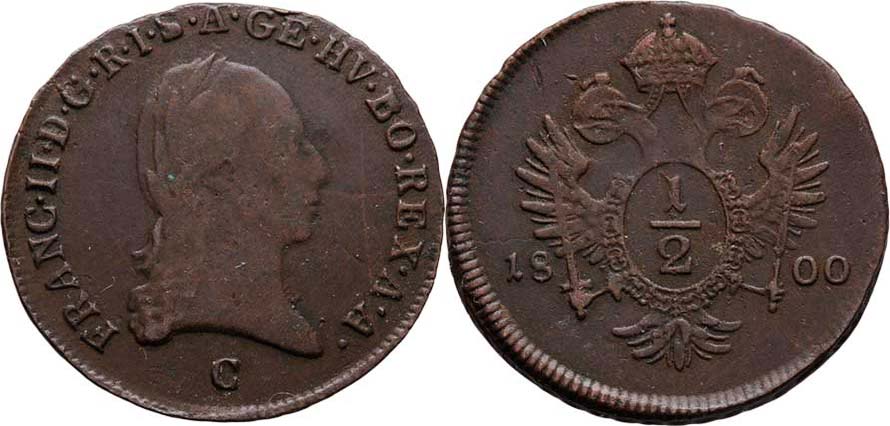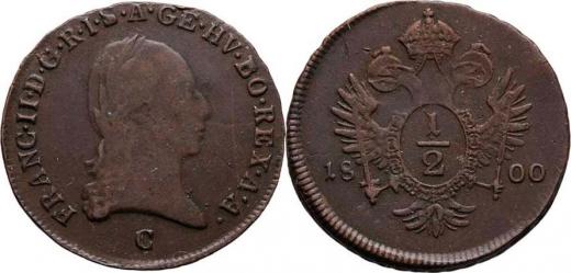 Cu 1/2 Krejcar 1800 C, Praha, 2.244g, mírně exc., dr.rysky, pěkná patina