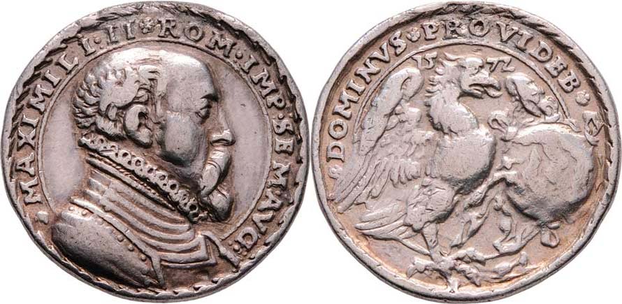 Abondio - AR medaile 1572 - poprsí zprava, opis / orel držící zeměkouli, opis, Nesign., lité stříbro 28mm, 9.804g, jako FA.16 (tab.III/1), m.o., patina R!