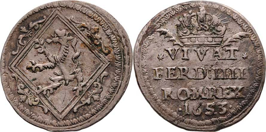 Jeton na holdování ve Štýrském Hradci 1653 - štýrský panter v kartuši / koruna a nápis, Ag 21/20 mm, 1.844g, M.852, H.2025, Nov.D.22a, patina, podl.štítky