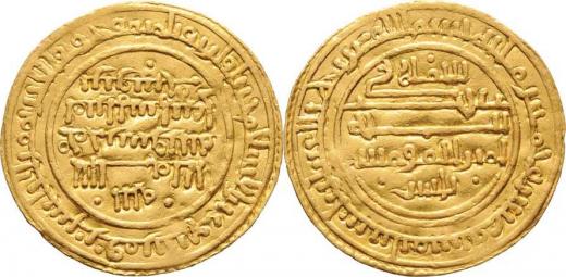 Dínár, AH.520 = 1126, minc. Sevilla, podobný jako MI.378, Wil.690, 3.943g, nep.zvlněný, patina, téměř