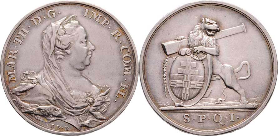 Berkel - holdování města Ypern (1779) - portrét zprava, opis / lev se štítem a dělovou hlavní, nápis, Sign.TvB, Ag 32mm, 10.782g, M.2092, H.2985, nep.rysky