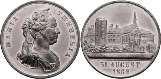 Pittner - 100 let vojenské akademie 1862 - portrét zprava, opis / budova akademie a 2-řádkový nápis, Sign., cín 50 mm, Haus.1601, dr.hr., nep.rys., graff.